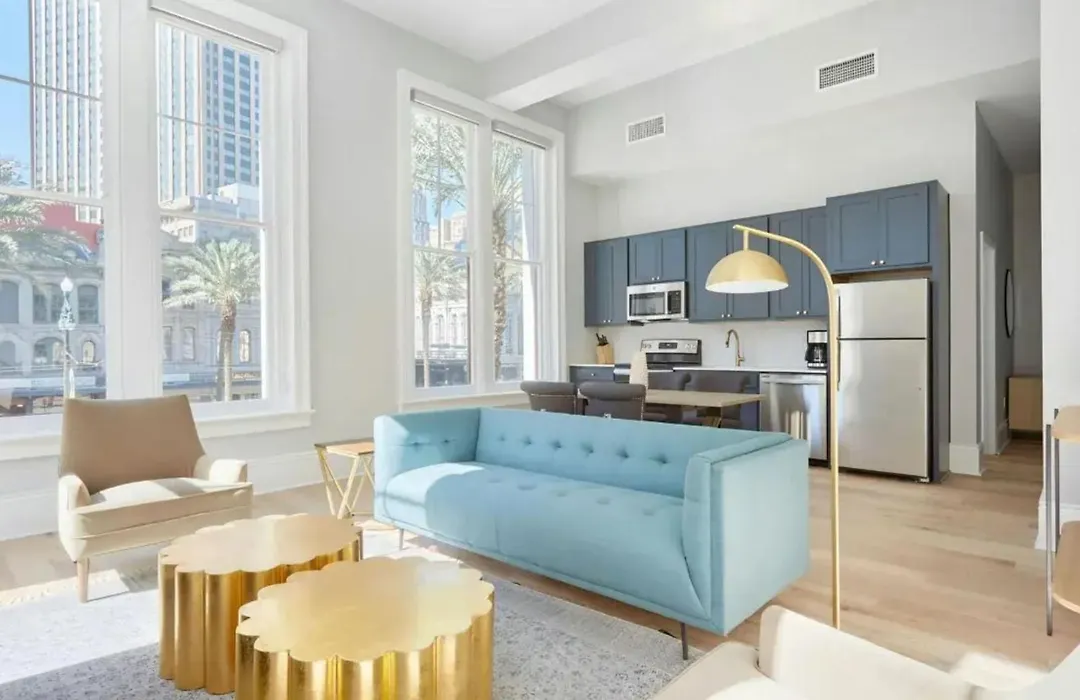 A fully furnished kitchen of 2 Units Steps To The French Quarter Bourbon St The Harlequin By Avantstay apartment has an oven and a dishwasher. New Orleans bus station is a short way from this accommodation.